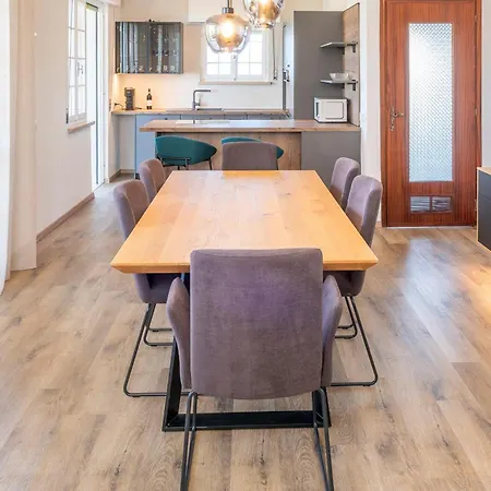 Επίσης, διατίθεται εξοπλισμένη μικρή κουζίνα με φούρνο και πλυντήριο πιάτων για αυτοεξυπηρέτηση.